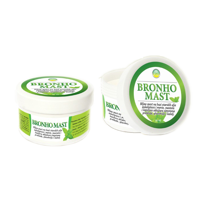 Biljna mast na bazi etarskih ulja eukaliptusa i mente, mentola i kamfora ublažava simptome prehlade, glavobolje i kašalj.